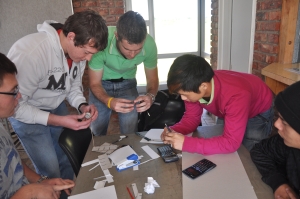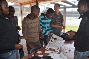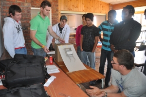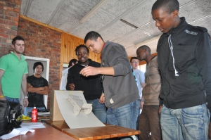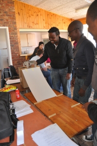 24 First Year Industrial Engineering students from the Nelson Mandela Bay Metropolitan University in Port Elizabeth took on the challenge of producing a vehicle that could travel down a ramp (600mm) and cover a minimum distance of 600mm on a flat surface. Once this was achieved the challenge was to travel over a shorter distance of 300mm and stop the vehicle before it fell off the edge of the table. Cars had to be designed using the press fit concept as no glue was to used. Wooden dowels (2mm) were provided and no other material could be used.
