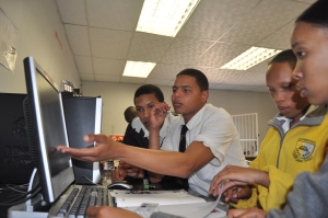 Now I`m going to tell you what we did. We where devided into grous of 4 at the same time we had to decide who will take part in what. They then took us into the Lab, we then sat in our groups and the owner gave us 2 designs that we could choose of naming; A DESK TIDY or a BUSSINESS CARD DISPLAYER. We choose to do the bussiness card displayer, I can say it was kinda though to come up with an idea that is attractive as well as a new idea. Just so you may know that we had to come up with a theme that had to include sport. Our group then started with the designs had a hard time with that but in the end we got what we wanted and you know they say two minds works better than one, oh and just for the fun we started after everyone, but we finished first. Here we are as follow: Dalon-the Construction manager, Zonia-the Design engineer, Bijon-the Team Manager and Verushca (me) the Media and Graphic artist.